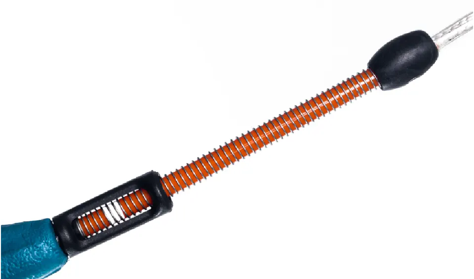 The Helix Force Tensioned rear lines now feature a new crank stop at the top of the bar float to prevent overwinding. This ensures that the rear lines pay out smoothly even when the back line is slack. This is important when rigging on the beach, as it allows you to easily depower your kite before launch, even without tension on the back lines.